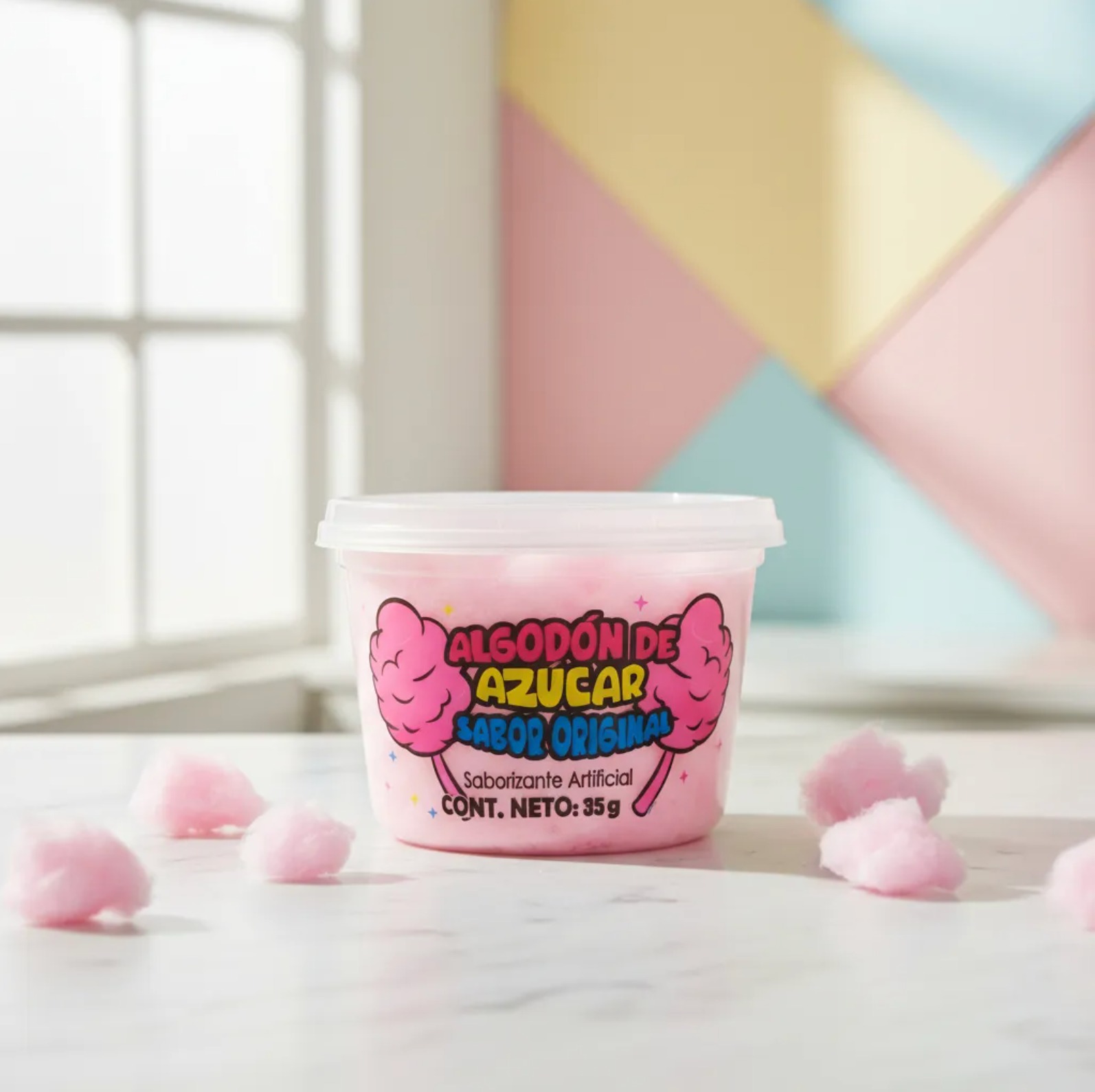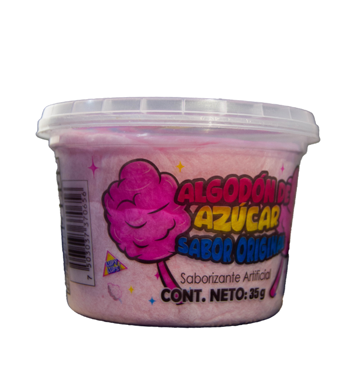 Delicioso algodón de azúcar sabor clásico, en un atractivo rosa. Caja Mix – Exhibidor de 12 piezas 6 de Sabor Original 6 de Sabor Mora azul